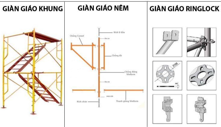 Mỗi ngày thì các loại giàn giáo xây dựng đều được nghiên cứu và phát triển để tối ưu tốt hơn, đáp ứng tốt nhất nhu cầu của từng công trình, nhà thầu. Nhưng cho đến hiện nay thì có 3 loại giàn giáo xây dựng được người dùng và nhà thầu sử dụng phổ biến nhất đó chính là: giàn giáo khung, giàn giáo nêm và giàn giáo ringlock.