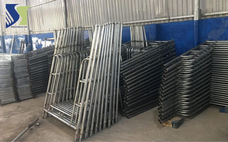 • Giàn giáo mạ kẽm thì được phủ một lớp kẽm bên ngoài giúp bao bọc và bảo vệ kim loại làm giàn giáo, chống oxy hóa tốt và nhìn cũng có thẩm mỹ hơn.